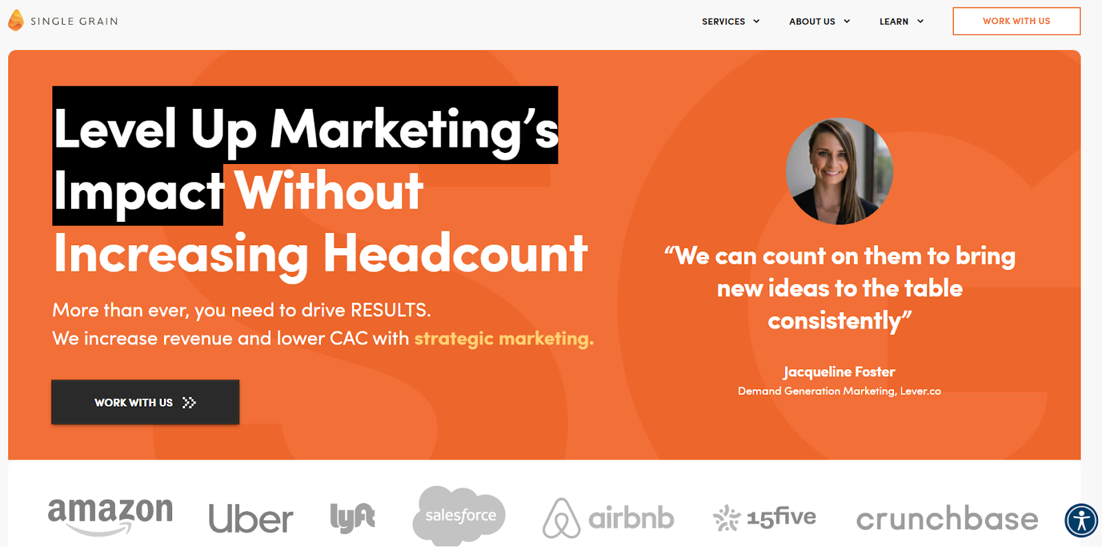 We might be a little biased 😁 , but Single Grain has earned its position as one of the world’s top B2B SEO agencies, with countless positive reviews from leading clients like Salesforce, Amazon and more.